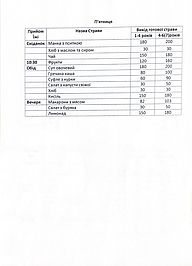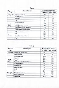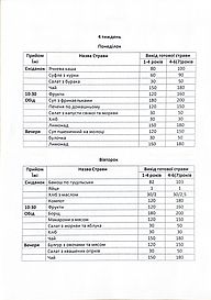 Примірне 4 тижневе меню на зимовий період 2025-2026 року
